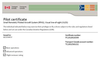 ACCESSiFLY is fully insured by the Drone Axis Group through Llyod's of London Aviation as well as bonded by current Transport Canada training, regulation, and governance. Our Pilots are fully trained and licenced under the new 2019 "Advanced RPAS Safety Assurance Certification" program for commercial work in all FIR Airspace Canada-wide (these regulations came into effect June 1, 2019 for all operators in Canada). We currently operate as an affiliate of AEROBOTIKA Aerial Intelligence, working as Transport Canada Certified Flight Reviewers. "Flight Reviewers" are Transport Canada Approved Professional Drone Pilots who can administer the Advanced Commercial Flight Review Exam to other pilots -this is the highest level of Certification possible in Canada.